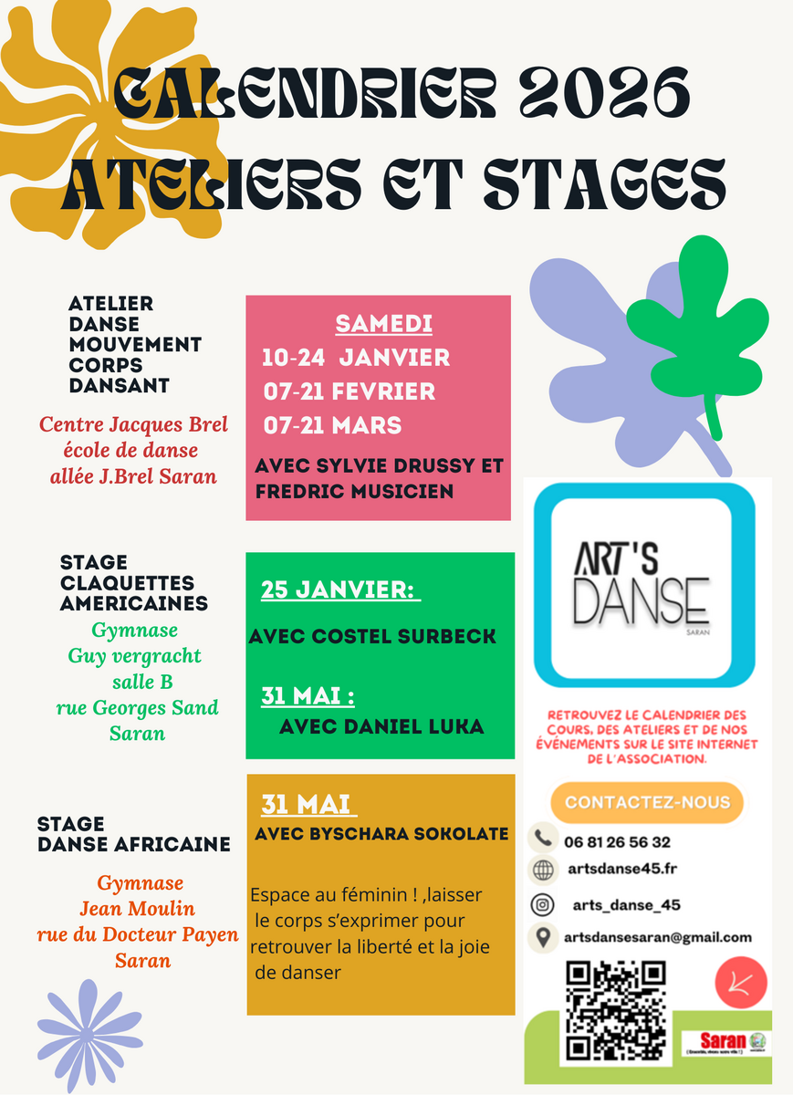 Calendrier 2026 ateliers et stages